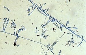 - Pada miselium yang lebih tua terbentuk klamidospora. Jamur membentuk banyak mikrokodidium ber sel 1, tidak berwarna, lonjong atau bulat telur, 6-15 x 2,5 -4um. Makrokonidium lebih jarang terdapat, berbentuk kumparan, tidak berwarna, kebanyakan bersekat dua atau tiga, berukuran 25 -33 x 3,5 -5,5 um.