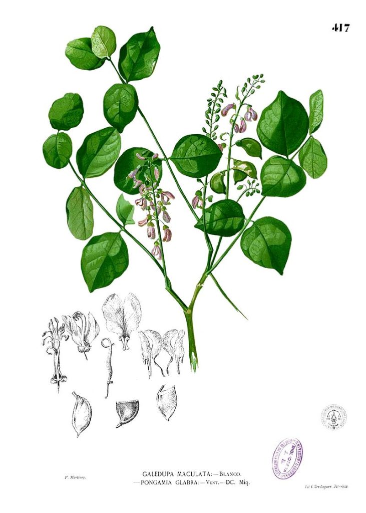 Pohon malapari (Pongamia pinnata) atau dikenal juga oleh warga India sebagai pohon yang “sangat terang” merupakan tanaman yang berasal dari keluarga Papilionaceae. Tanaman tersebut tersebar dari India hingga Fiji, dengan ketinggian wilayah dari batas lautan hingga 200 meter. Masa sekarang, tanaman tersebut dapat ditemukan di negara Australia, Florida, Hawaii, Malaysia, Oseania, dan Filipina. Di negara India, pohon malapari ditanam di sekitar kota sebagai tanaman hias karena warnanya yang menawan. Khususnya pada bulan Maret dan April, Pohon malapari menunjukkan warna merah lembayung selama seminggu. Tunas pohon malapari juga memunculkan daun-daun muda yang kemudian akan tumbuh dan memperlihatkan warna hijau limau yang berkilau.
