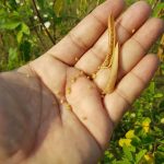 - Biji bentuk ginjal, pipih, berukuran 0,5-1 mm dan dalam satu polong berisi puluhan butir biji yang berwarna hitam.