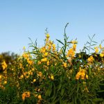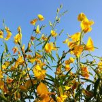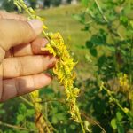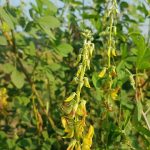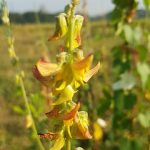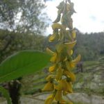 - Bunga majemuk, mahkota berbentuk kupu-kupu, berwarna kuning, sering kali terdapat urat cokelat kemerahan dan tumbuh di atas tumbuhan sepanjang 15-40 cm, masingmasing dengan 20-30 bunga.