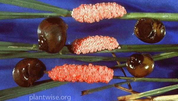 Jenis Hama : Keong sawah / bekicot sawah atau siput murbai Pomacea canaliculata Lamarck (Mesogastropoda: Ampullariidae, Pomacea lineata, Ampullarius insularus Chang, Ampullarius canaliculata Lamarck, Ampullarius insularum Hamada & Matsumoto, Pila canaliculata Lamarck, Ampullaria canaliculata...